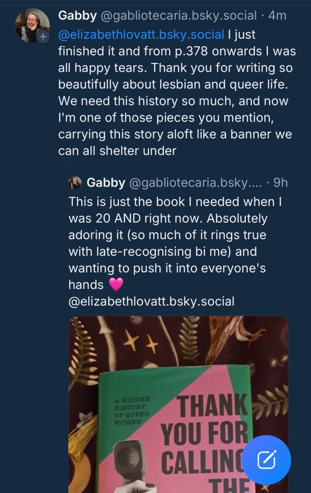 For a debut, unknown author with a, let’s face it, pretty niche book about the history of a lesbian telephone service (and me), I’m so incredibly proud of all the book has done so far in finding readers and bringing people together. To see people at events chatting with each other and experiencing some of that community I speak about in my book has honestly been the best part of all this.